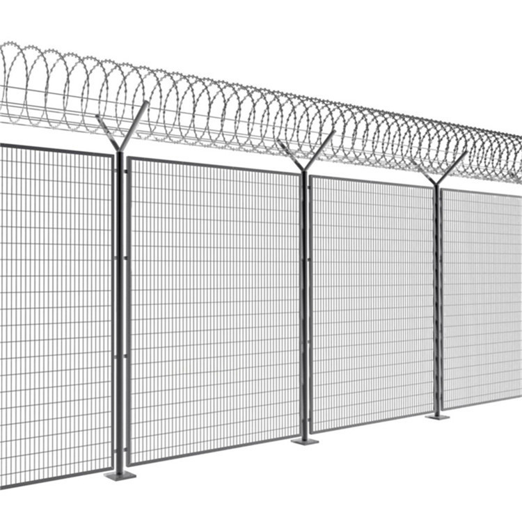 核電站圍欄網的-電廠防護網廠家是一款用于電廠的護欄網產品,其安全防護級別很高,也經常用于監獄,機場等等高安全防護場所。是由V型支架立柱,型焊接片網,安全防盜連接件和熱鍍鋅蛇腹型刀刺網組成。具有安全性高、防攀爬能力好,網片連接方式采用特制SBS緊扣件,有效防止人為的破壞性拆卸,