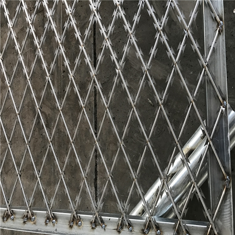 二、方形孔刀刺網:這種刀片刺網的焊接方式與電焊網片是一樣的,但方形網孔的刀刺網的生產長度是有限制的,一般的方形孔刀刺網長度為3米或4米。