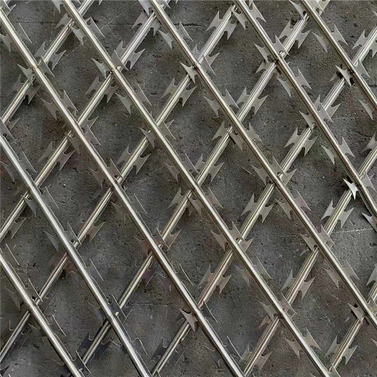 焊接型刀片刺網批發特點:不銹鋼刀片刺網具有嚇阻效果好、美觀、施工便利,經濟實用等優異特點。