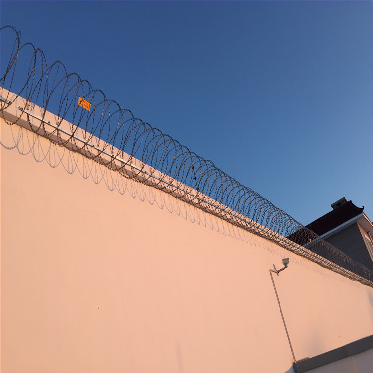斧型刺刀圈的產(chǎn)品知識(shí)是一種新型防護(hù)網(wǎng),由銳利尖角刀片和芯線組成,刀刺、刀型整齊、刀片銳利、排列均勻致密、連接牢固。強(qiáng)度和安全防御性級(jí)別很高.鋼筋網(wǎng)圍界刺鋼絲采用斧型刺刀圈,刺刀圈內(nèi)芯為直徑2.5mm的冷拔低碳鋼絲并經(jīng)防腐處理,表面熱鍍鋅。安裝刺刀圈與頂部V形延伸臂用不銹鋼卡子連接,沿長(zhǎng)度方向每隔500mm設(shè)4個(gè)卡子連接.