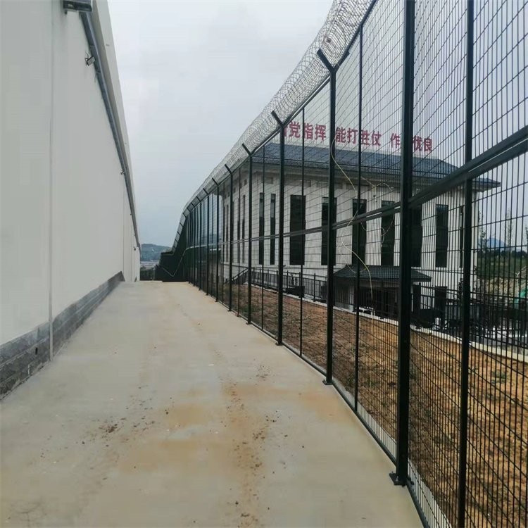 監獄鋼網墻是一種新型防護網,這種新型刀刺護欄網由蛇腹式刀刺網和焊接刀片刺網網片或有鋼絲焊接的網片組成。監獄隔離網可平地安裝,也可在圍墻上二次安裝,有效防止攀逃。直刺式刺網隔離帶,是用柱體和普通刺繩橫、縱、斜向交叉綁定成刺網隔離帶。主要用于特殊地帶、軍事基地圈護、溝壕圈護,安裝簡易,經濟耐用。 監獄護欄網又稱作“Y型安全防御護網”,是由V型支架立柱,加強型焊接片網,安全防盜連接件和熱鍍鋅刀片刺籠組成,強度和安全防御性級別很高。近年來,被廣泛應用在監獄,軍事基地等高安全場所。注:如果在監獄護欄網頂部加裝刀片刺絲、刀片刺繩后又很好的增強了安全防護性能。采用電鍍、熱鍍、噴塑、浸塑等防腐形式,具有很好的抗老化、抗曬、耐候等特點。其產品造型美觀、花色多樣,既起到圍欄作用,又起到美化作用。由于具有安全性高、防攀爬能力好,網片連接方式采用特制SBS緊扣件,有效防止人為的破壞性拆卸,橫向四道折彎加強筋,使網面強度顯著增加。