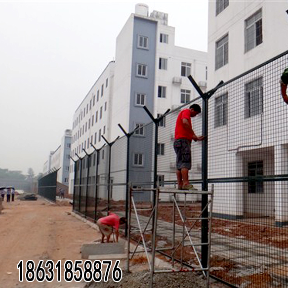 2、Y型立柱監獄隔離網設計要求整體連貫一致,框網方正,對角線誤差不大于2cm。 隔離網網頁安裝離地距離5-8cm,框網與立柱采用螺栓固定邊耳式連接網頁每邊與立柱連接點不少于六處。
