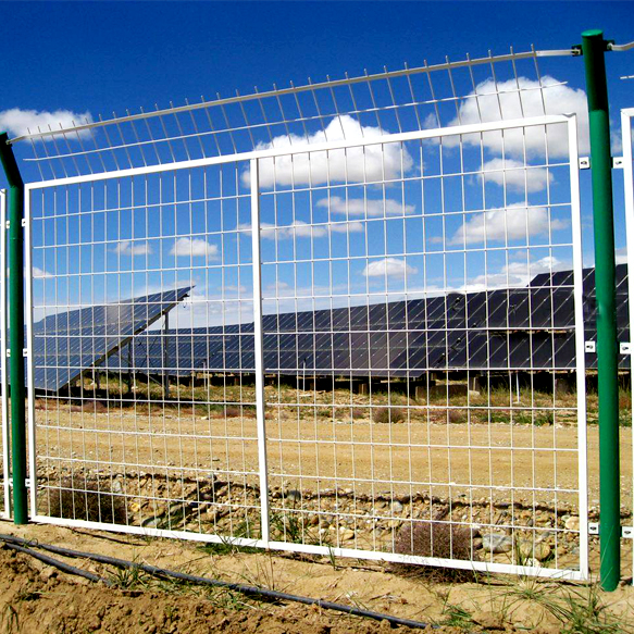 光伏電站圍網(wǎng)是一種新型的圍網(wǎng),選用優(yōu)質(zhì)低碳鋼絲作為原材料,表面浸塑處理,具有無需模具、加工成本低、成型容易、日久抗腐蝕、抗紫外線、不怕雨淋可加工各種外形的特點(diǎn)被廣范使用。是專門為光伏電站設(shè)計的防護(hù)產(chǎn)品,應(yīng)用在光伏電站各個區(qū)域的防護(hù)和隔離.它有效防止了變電站內(nèi)外的人身安全和變電器等設(shè)備的防盜,是變電站的防護(hù)新產(chǎn)品。具有較長的使用年限。最常見的形式主要就是邊框隔離防護(hù)網(wǎng).