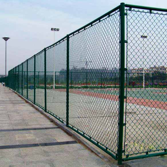 球場圍欄采用進(jìn)口PVC材質(zhì)包塑鐵絲網(wǎng)做網(wǎng)球場的圍網(wǎng),既可節(jié)省每年為普通鐵絲重新油漆的費用