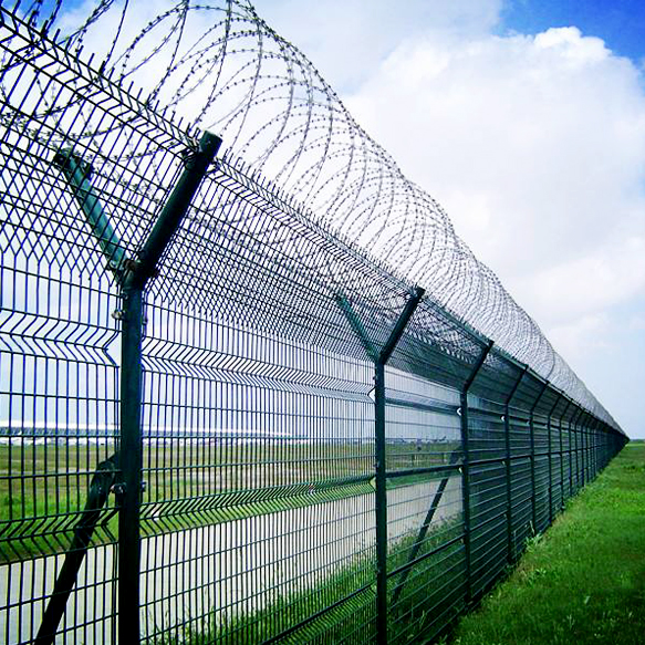 1、機(jī)場(chǎng)護(hù)欄網(wǎng)也被稱為機(jī)場(chǎng)護(hù)欄或Y型安全保護(hù)網(wǎng),由V形支架立柱,加強(qiáng)焊接網(wǎng)片,安全防盜聯(lián)接件和熱浸鍍鋅刀片組成。