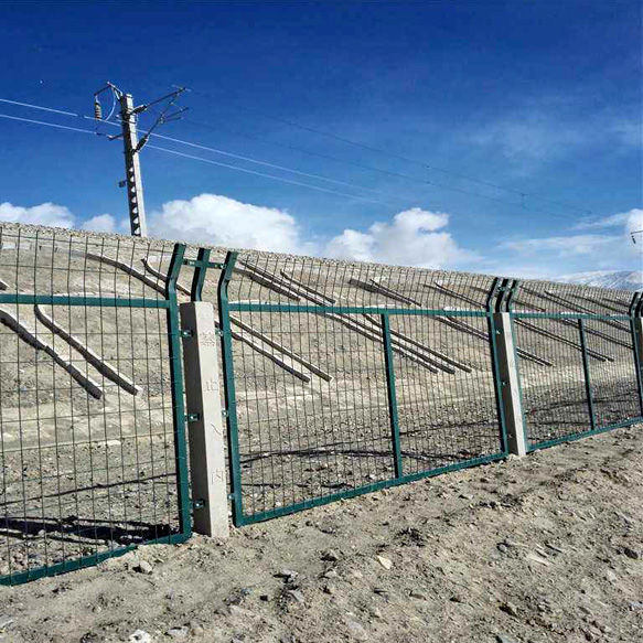 鐵路護欄網(wǎng)又叫鐵路隔離柵、鐵路封閉網(wǎng)、鐵路安全防護網(wǎng)、高鐵防爬圍欄、鐵路柵欄網(wǎng)片、鐵路防護金屬網(wǎng)是重要的交通基礎(chǔ)設(shè)施,所以在安全性與實用性的要求上更加的嚴(yán)格。整個鐵路封閉網(wǎng)采用低碳鋼絲或不銹鋼絲編焊而成,其大致結(jié)構(gòu)可分為立柱+邊框,連接方式可以通過連接件連接,也可以用網(wǎng)片直接與立柱卡接、螺栓連接和連接件鉚接,角度可任意調(diào)整。